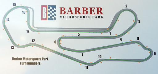 The facility was built by George Barber, a resident of Birmingham, AL, where the track is located. The track consists of 16 turns, and is technical in nature. IndyCar and IMSA hold races there every year, as well as SCCA and other motorsports clubs.